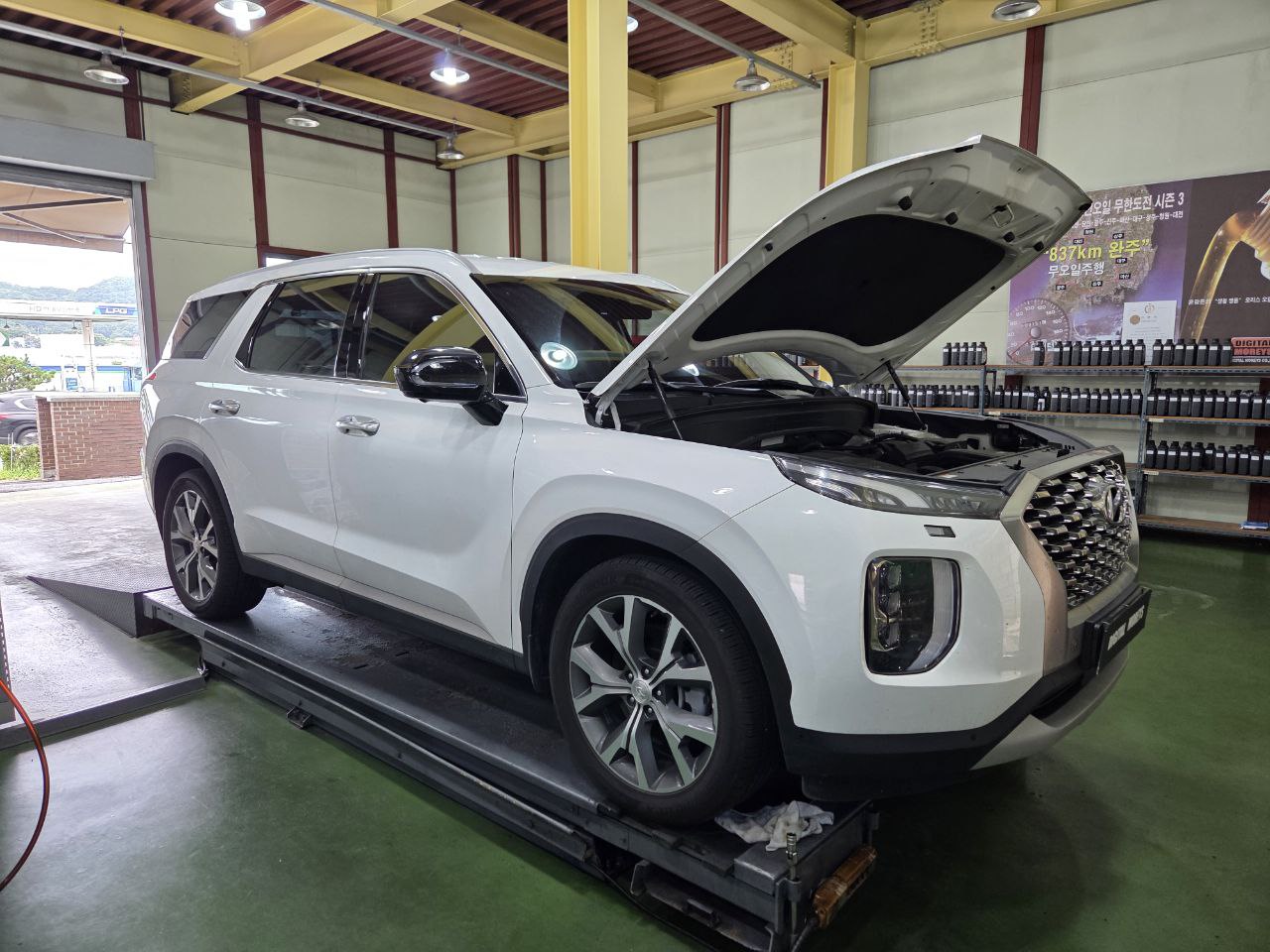 2025년9월4일 펠리세이드 가솔린 엔진오일 교환차 "디모 엔진오일" 본사 오일샵을 방문하셨습니다.