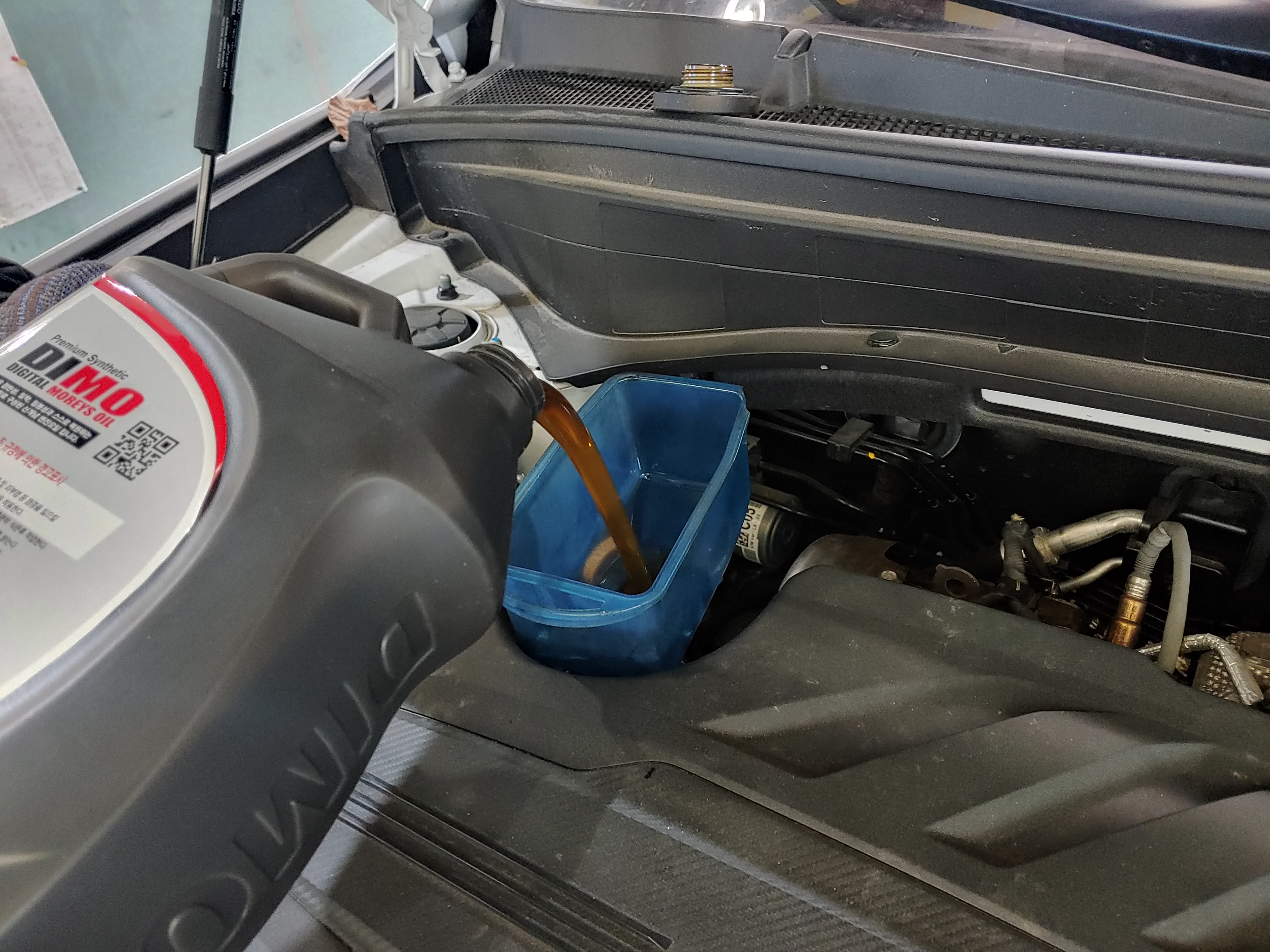 오늘 처음 "디모 엔진오일"로 교환하기 위해 오셨어요.