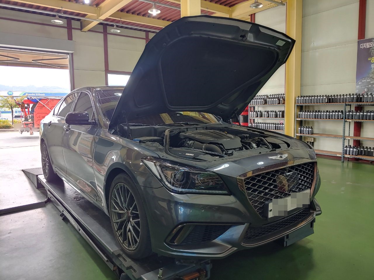 2022년9월26일 제네시스 G80 엔진오일 교환차 "디모 엔진오일" 본사 오일샵을 방문하셨습니다.